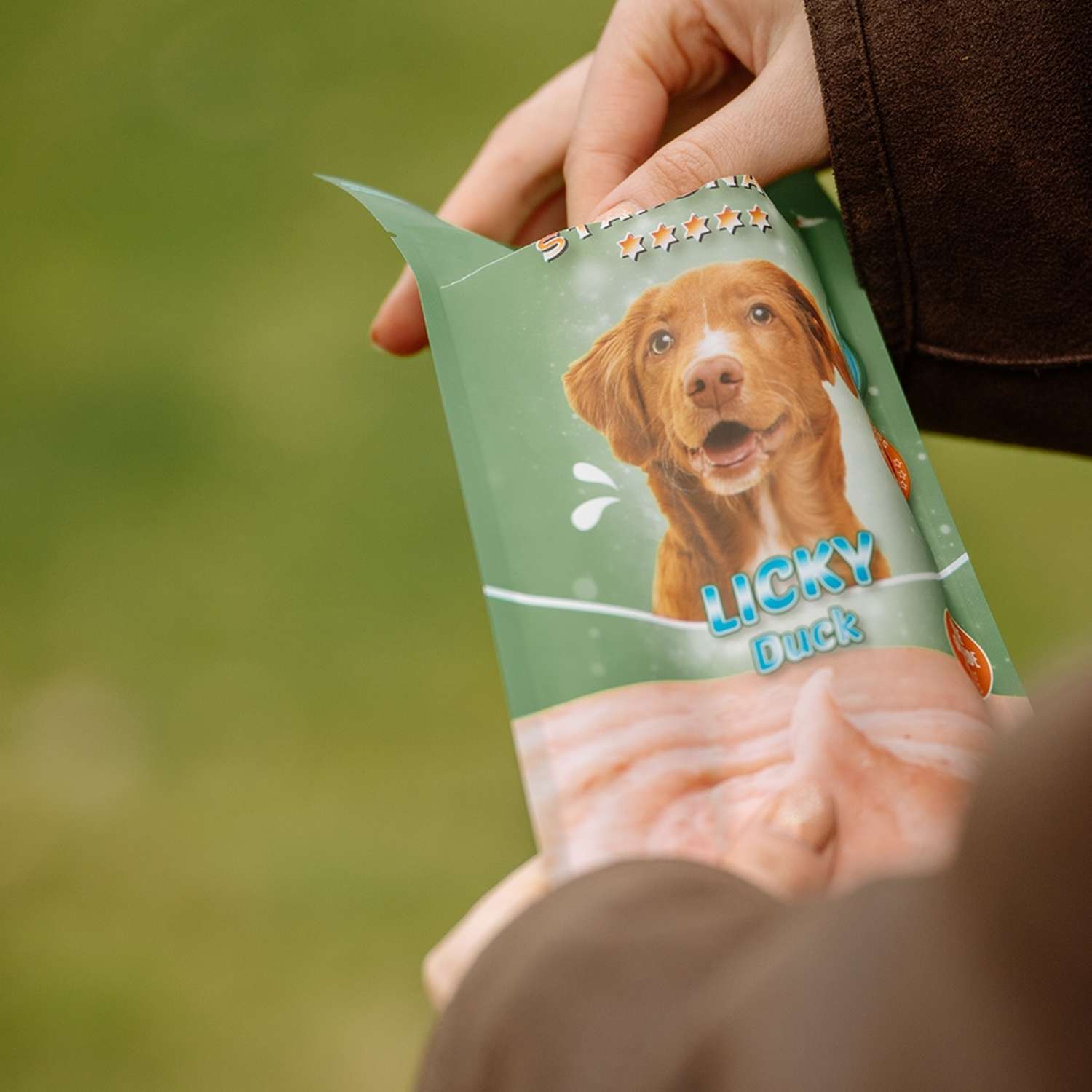 Hjem Hund Godbidder & Tyggeben Øvrige StarSnack LICKY Duck, 5×15 g.