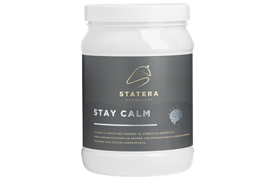 Stay Calm er et koncentreret tilskud til heste med tendes til stress, nervøsitet og manglende fokus. Indholdet af Tryptofan, B vitaminer, magnesium og nøje udvalgte urter, bidrager til en velfungerende regulering af stresshomoner og hjælper hesten til en hverdag i balance. Stay Calm er dopingfri og må ligeledes tildeles til drægtige/lakterende hopper samt føl og plage.