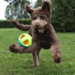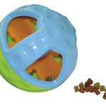 [0] => Thermo Plastic Rubber; tandpleje og sjov ved at tygge; robust; flyder; med åbning til tørre godbidder; med speciel pivelyd
