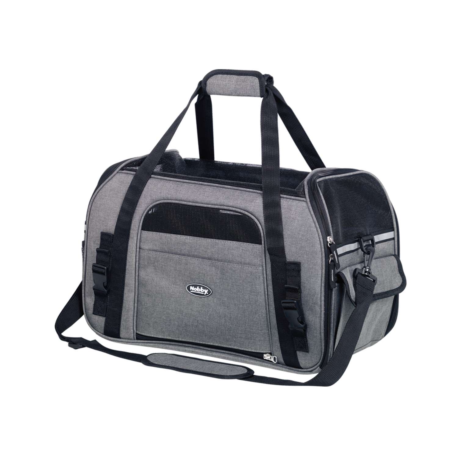 Taske “Lujan” i størrelsen 48x25x33 cm, lavet af slidstærkt mikrofiber og kan vaskes. Tasken har god ventilation og kan bære op til ca. 8 kg. Den har også 5 lommer til tilbehør, en karabinhage indeni og en løkke til fastgørelse til bilens sæde eller trolley-kuffert. Tasken har både skulderrem og håndtag og er egnet til både katte og hunde.