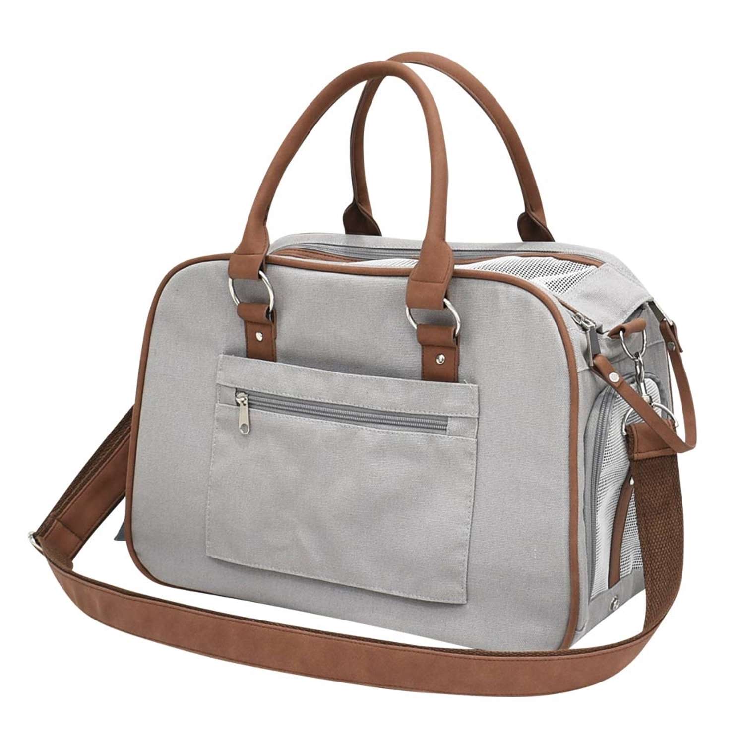 [description] => Transporttaske "PERKA" i slidstærkt mikrofiber med imiteret læder, vaskbar og med god luftcirkulation takket være meshindsatser. Fronten kan fastgøres og tillader dyrets hoved at strække sig ud. Indvendigt er der en karabinhage til at fastgøre hunden og en aftagelig bund. Tasken fås i forskellige farver.