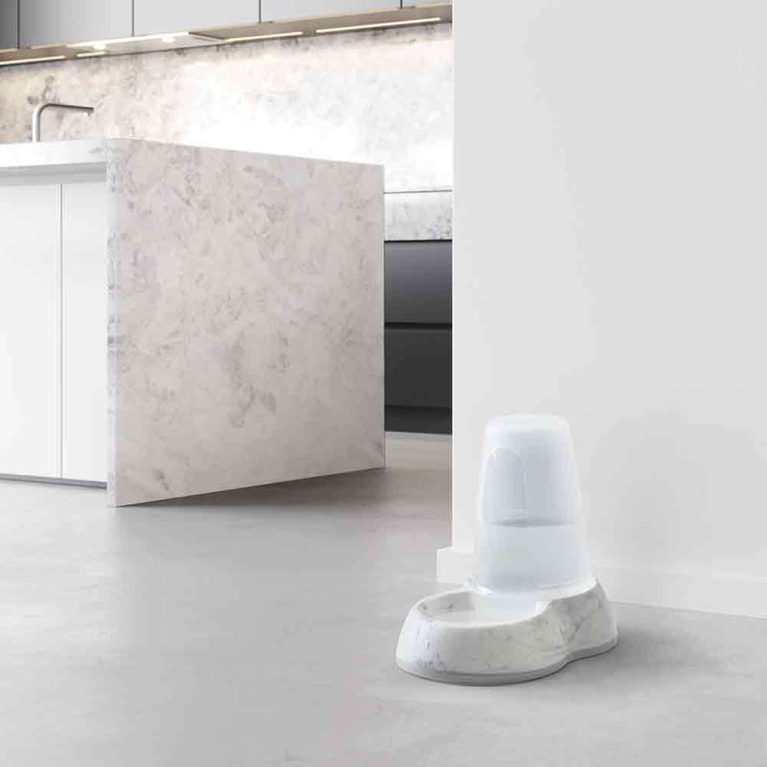 [0] => Vanddispenser; marmorfarvet; med forsænkede greb; skridsikker; 1,5 l; 26 x 17,5 x 23 cm