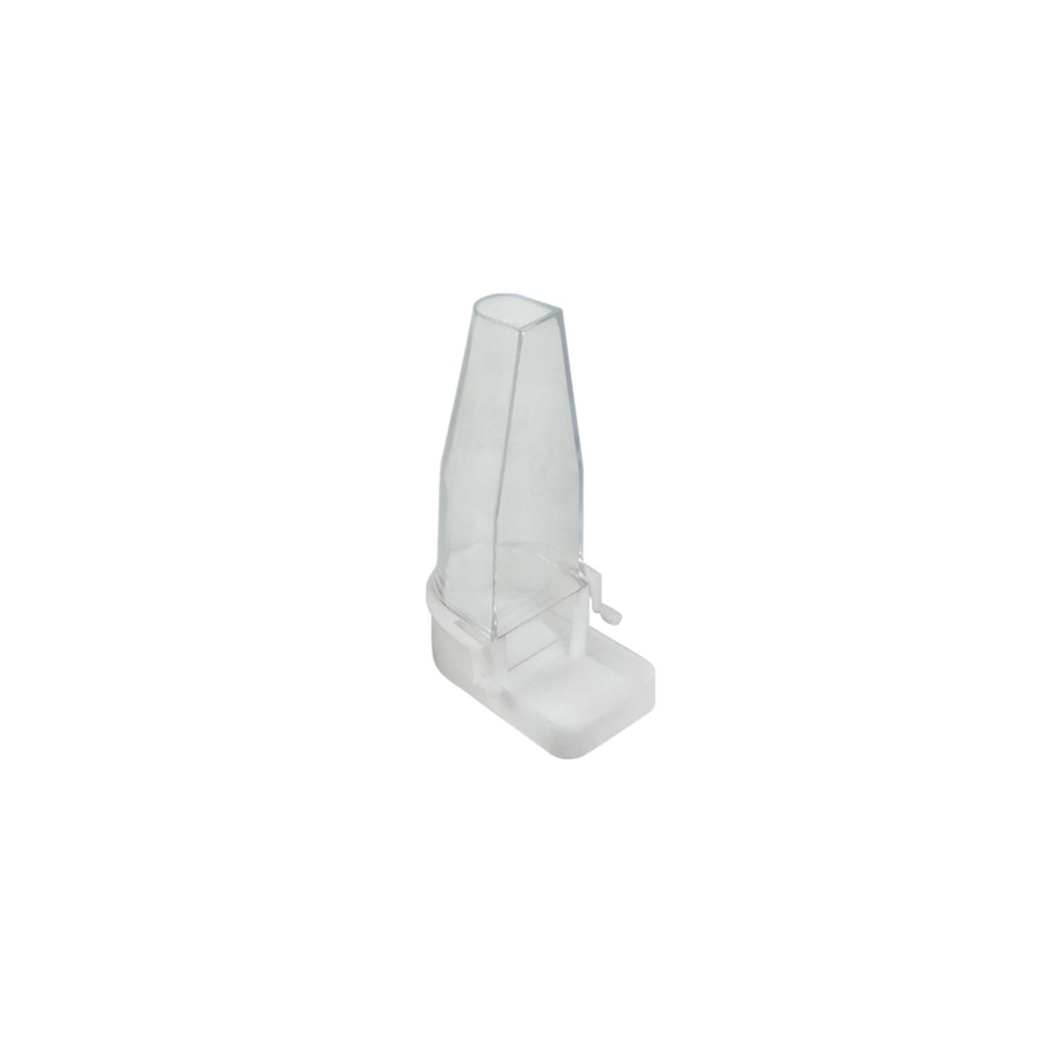 Vanddispenser i plastik med en kapacitet på 75 ml. Velegnet til fuglebure med vandret trådnet. Transparent design gør det nemt at se, om der er nok vand tilbage.
