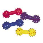 Vinyl legetøj i form af en håndvægt med lyd til hunde.