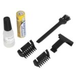 [0] => Trådløs; til store dyr; selvstændig på grund af batteridrift; inkluderet i leveringen: Klippe-sæt (0,6 mm), 1AA batteri; 2 plastik vedhæftningskamme (3,0 + 4,5 mm), olie, rengøringsbørste; knivbeskytter.