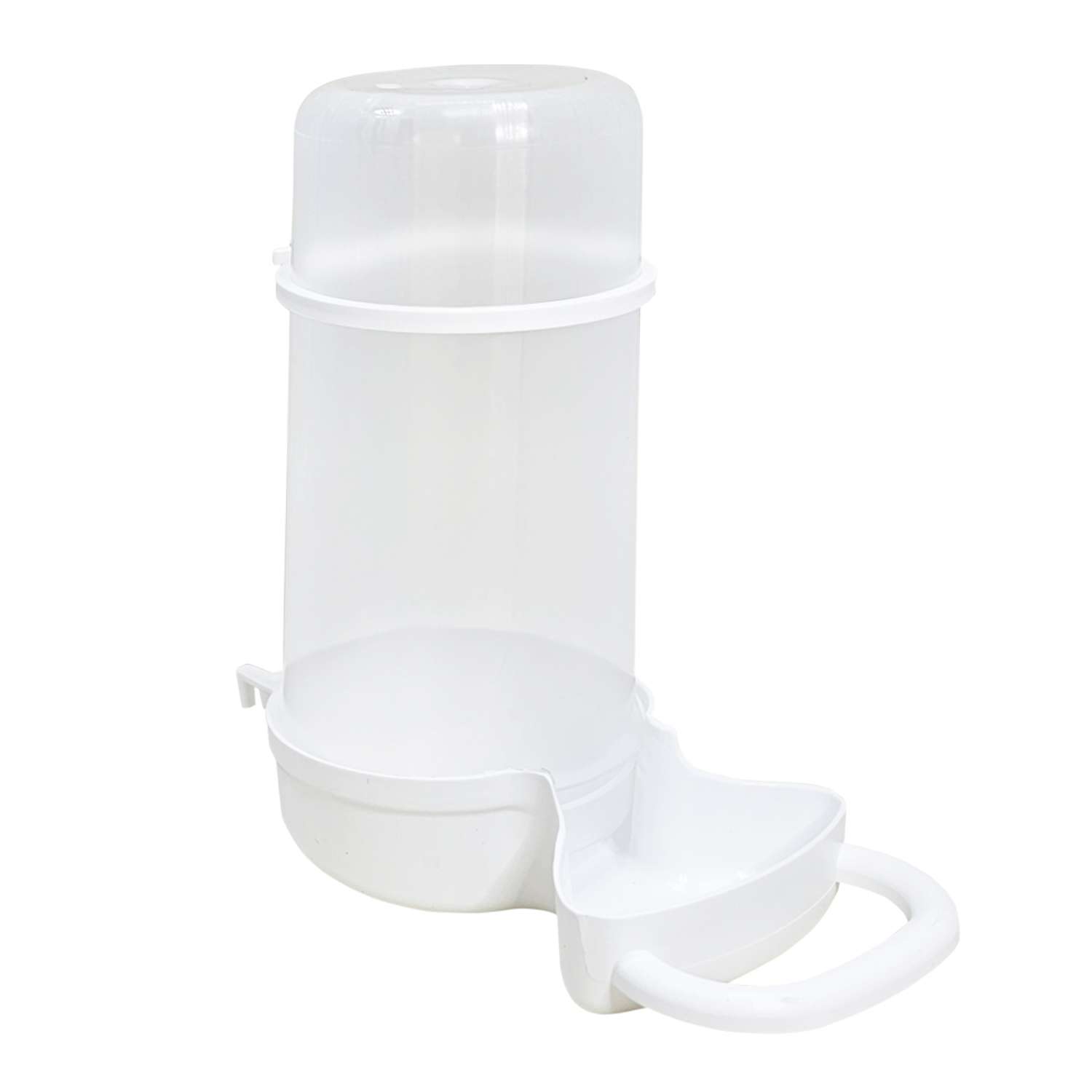Weekend foderautomat til fuglebur på ca. 500ccm, med en gennemsigtig plastikbeholder, så du kan se, om der er nok mad tilbage. Den opretstående konstruktion sikrer, at der altid er passende mængde mad tilgængelig, mens fuglene spiser.